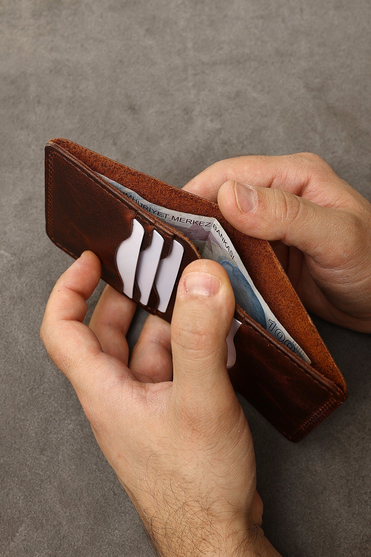 Gerçek deri malzemesi, cüzdanınıza şık bir görünüm kazandırırken aynı zamanda dayanıklılık sağlar